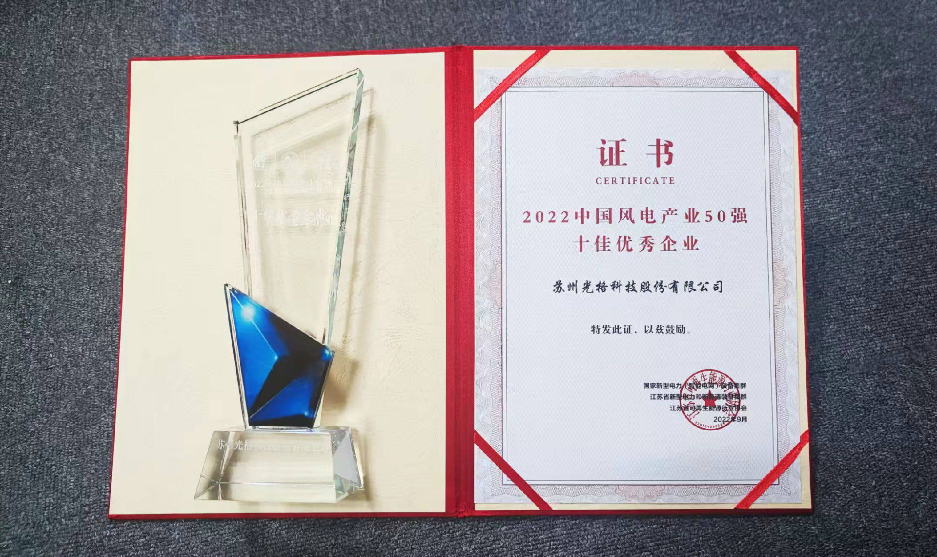 根據大會(huì )公布的“2022中國風(fēng)電產(chǎn)業(yè)50強”評選結果,蘇州光格科技股份有限公司獲評“2022中國風(fēng)電產(chǎn)業(yè)50強十佳優(yōu)秀企業(yè)”。