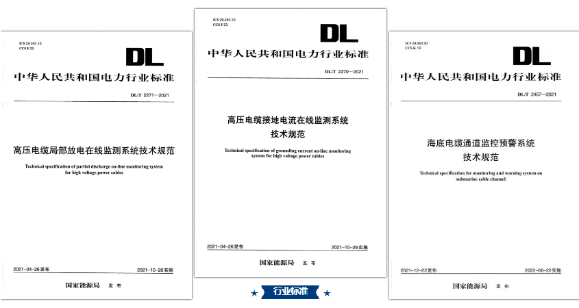 公司參與制定了多個(gè)電力行業(yè)標準,為新技術(shù)的推廣普及做出積極貢獻,包括國家能源局發(fā)布的《高壓電纜局部放電在線(xiàn)監測系統技術(shù)規范》《高壓電纜接地電流在線(xiàn)監測系統技術(shù)規范》《海底電纜通道監控預警系統技術(shù)規范》等。