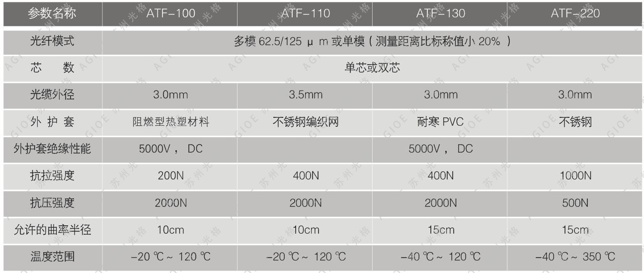 1、ATF-100產(chǎn)品于2008年首次完成設計、生產(chǎn)和銷(xiāo)售,ATF為Agioe Temperature Fiber的首字母縮寫(xiě),意為蘇州光格出品的感溫光纖。