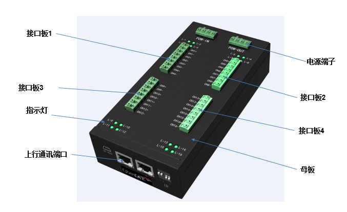 2、從站母板母板主要由ARM處理器、EtherCAT通訊接口、接口擴展槽、狀態(tài)指示燈等部分組成,每個(gè)母板包含3個(gè)或4個(gè)接口擴展槽,每個(gè)接口擴展槽可自由選配任意類(lèi)型的接口板。